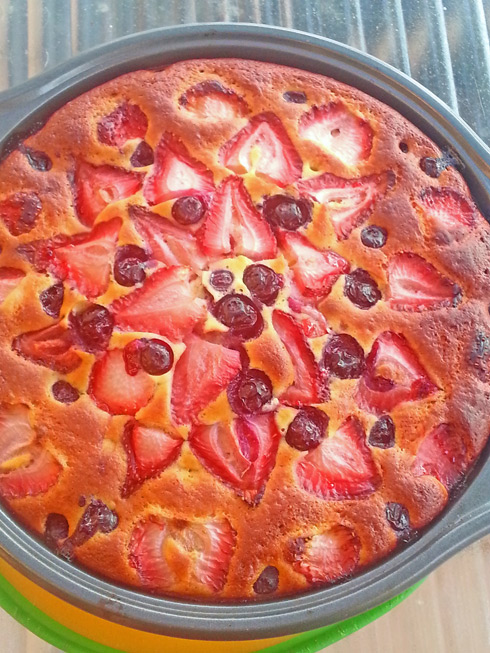- 1 1/2 – 2 cup berries to taste(slice the strawberries or stone fruit if you use it, Svetlana also recommends not to use too much fruit, because the cake will not rise well)