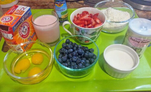 - 1 cup kefir or yogurt (I used 6 oz berry super smoothie and added whey to make a cup of liquid, and reduced the sugar amount by half to compensate by the one in the smoothie)