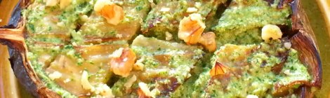 This recipe is a variation on a Georgian ( as in country not a state) classic eggplant rollatini, or sandwiches with eggplant stuffed with cilantro paste. I was too lazy […]