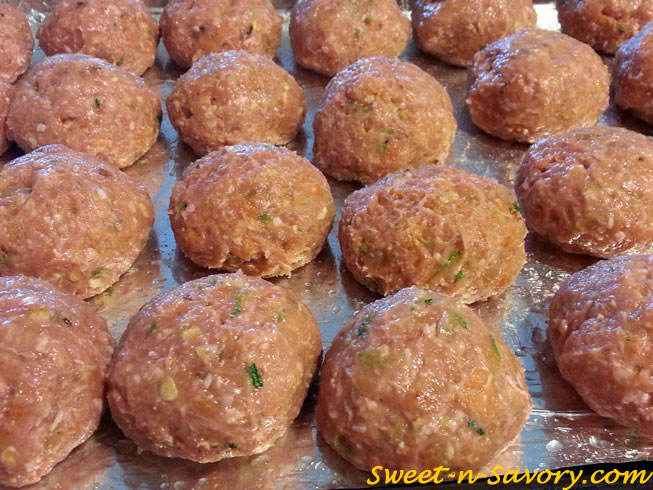 - 1/2 -1/4 cup oatmeal, if the mix is too runny and you are unable to form a meatball (if you use old fashioned oatmeal, pulse it in a food processor a little, oatmeal can be substituted with bread crumbs or raw whole wheat cous cous)