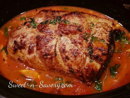 - For slow cooker :- Place the tomato sauce, wine, mushrooms with water and any leftover filling into the slow cooker insert or dutch oven. Mix and place the roast on top. set to cook on High for 4 hours or Slow for 8.
