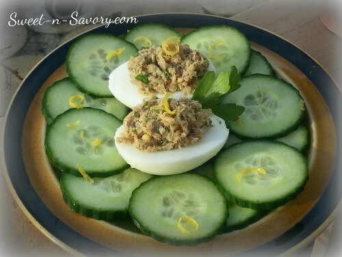 I was playing with my loseit calorie and macro calculator all morning trying to design yummy high protein snacks, and came up with this version of a stuffed egg. Full of umami flavor, satisfying, and packing a hefty serving of of protein. Paired with shredded romaine or cool cucumbers- Deelish!