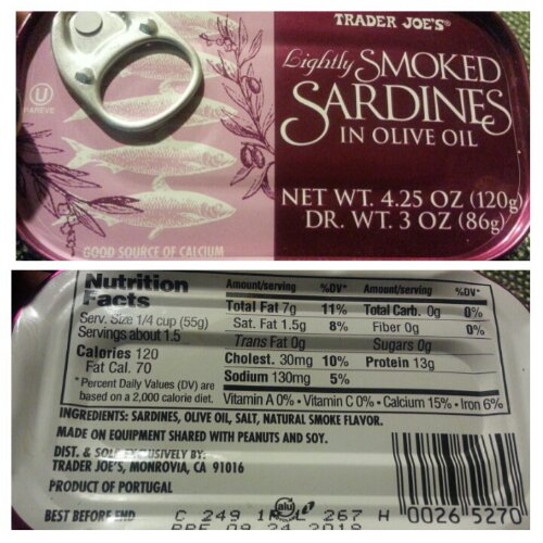 - 1 3oz can sardines, I used smoked sardines in olive oil.