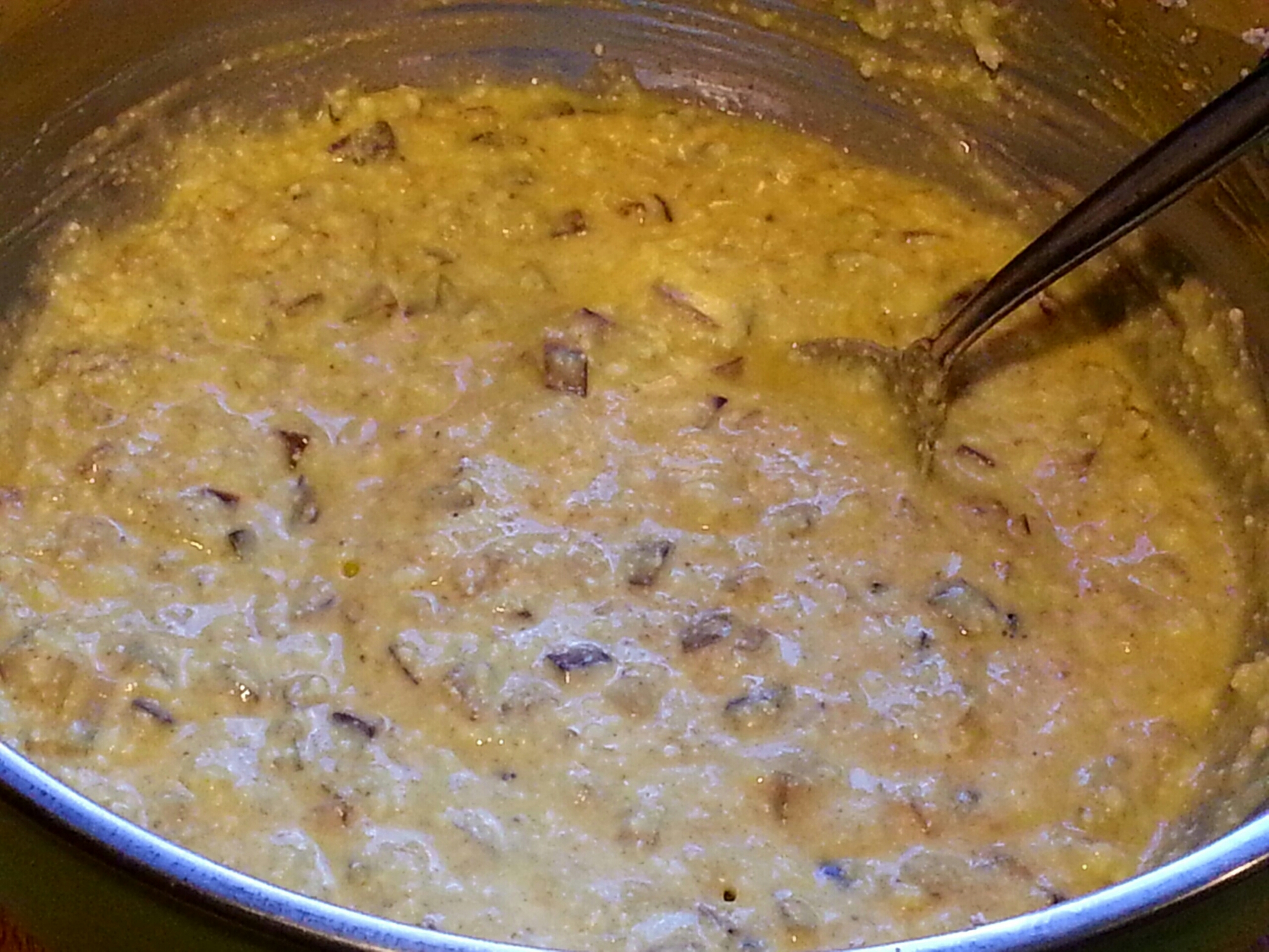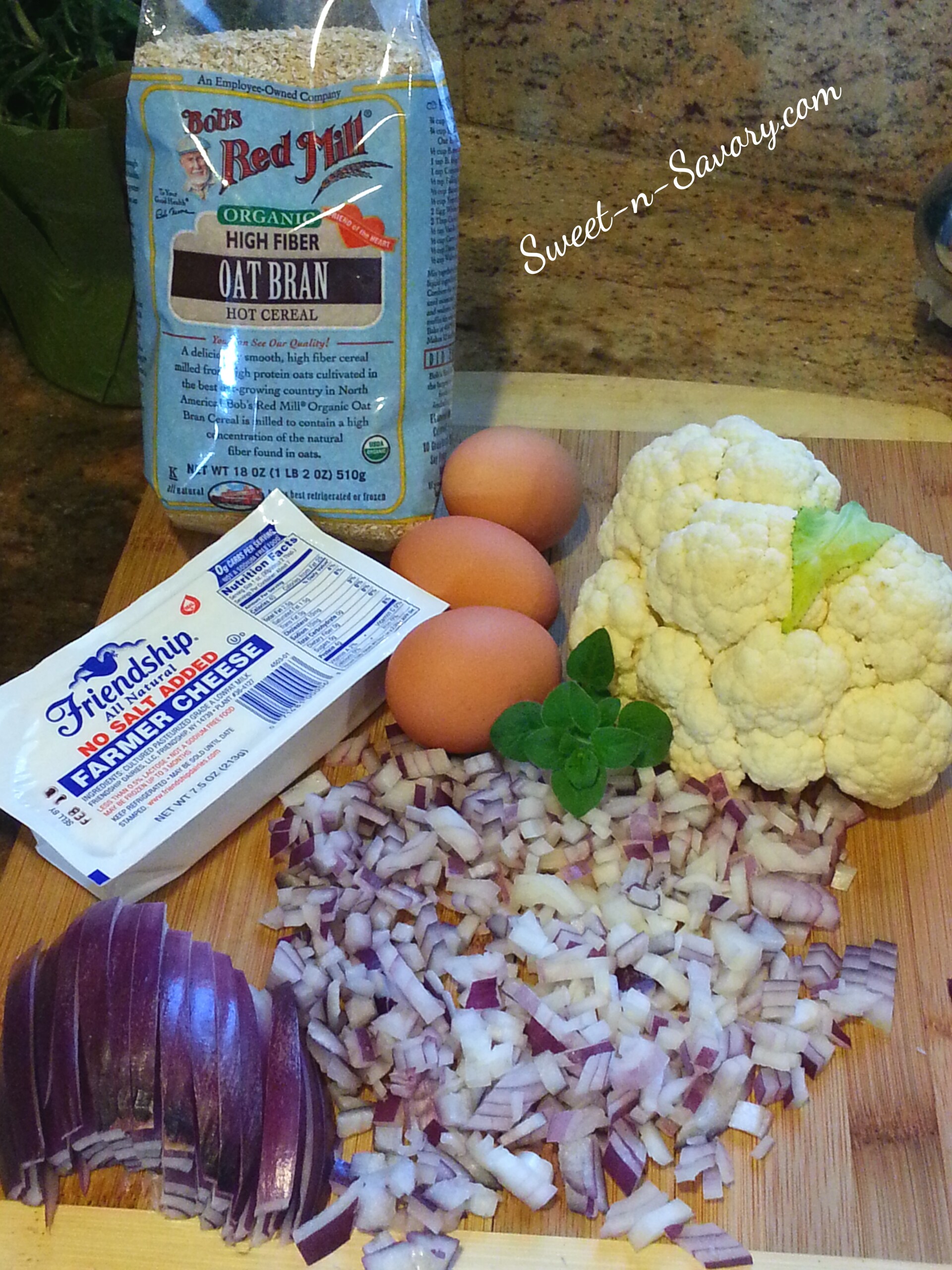 - Combine Farmer Cheese, sauteed onions,and oat bran with the egg. season with turmeric, salt and pepper t and mix gently until the mixture is well incorporated. It should have the texture of pancake batter.