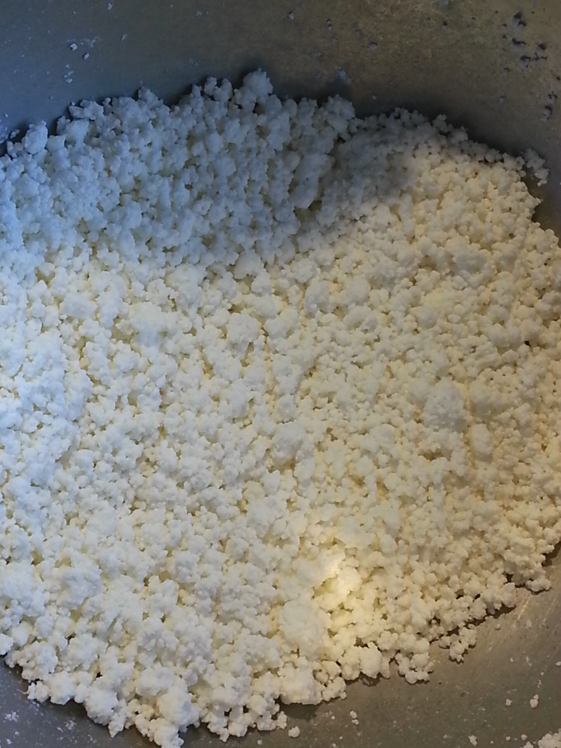 - In another bowl, break apart the Farmers cheese.