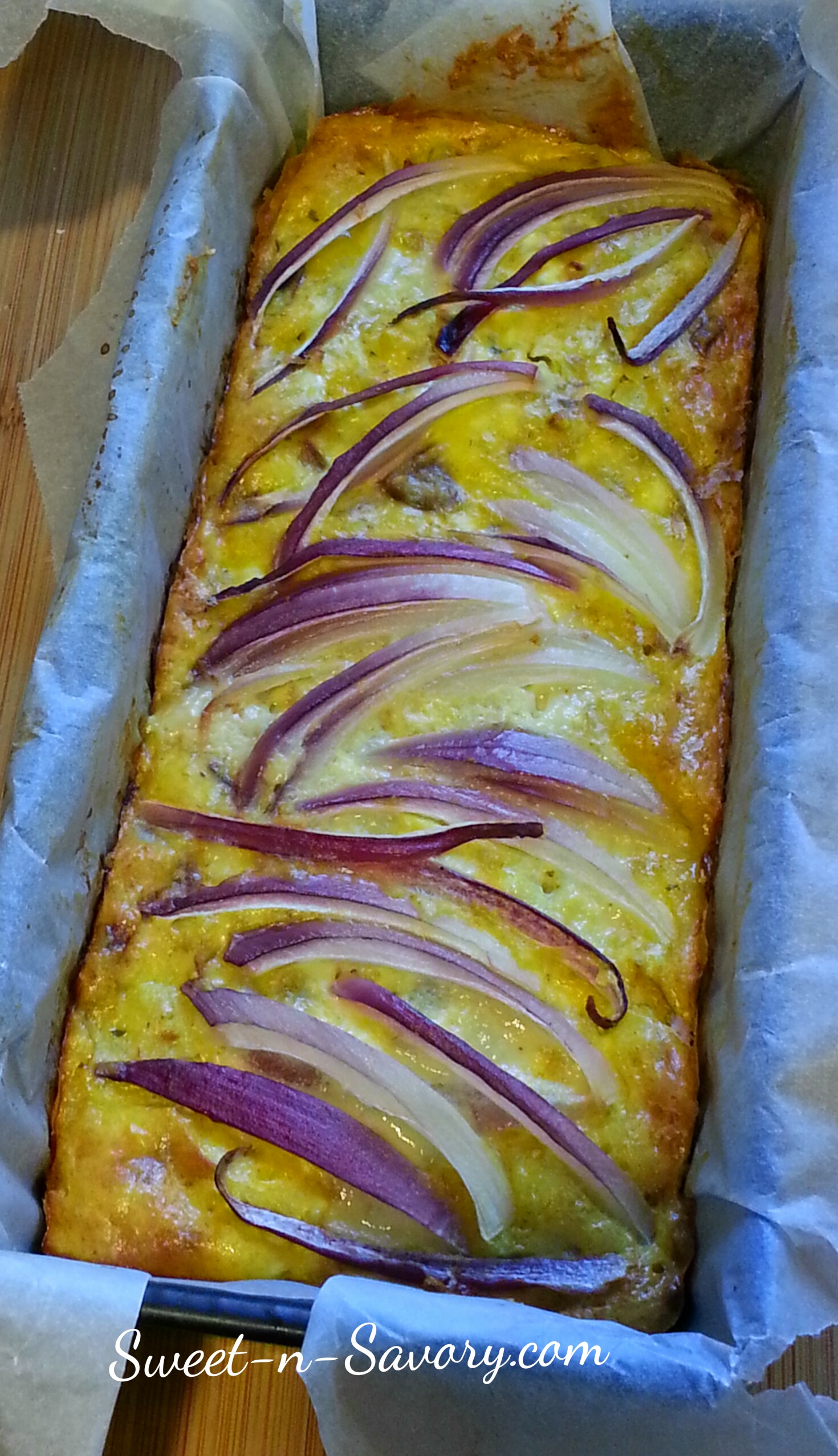 - Cover the cauliflower with remaining batter. And top with reserved onion strips.