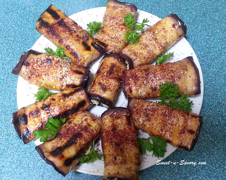 Summer is an ultimate time to relax, go to the beach and party. I haven’t had much opportunity to relax or go to the beach, yet, but in the past month and a half I have hosted and catered five major events, and the one appetizer that has been requested by friends and family each and every time is this walnut stuffed eggplant rollatini. There is definitely something so essentially earthy in the melt in your mouth texture of the eggplant roll that appeals to the palate, because no matter how many rolls I make, and despite everything else that’s served, there is just never enough of these delicious Georgian (country, not the state) style eggplant rollatini. Many of my guests kept asking me for a recipe, and so I have decided to put it up on the blog instead of having to explain the recipe over and over. After all this is the reason for the existence of the blog in the first place.