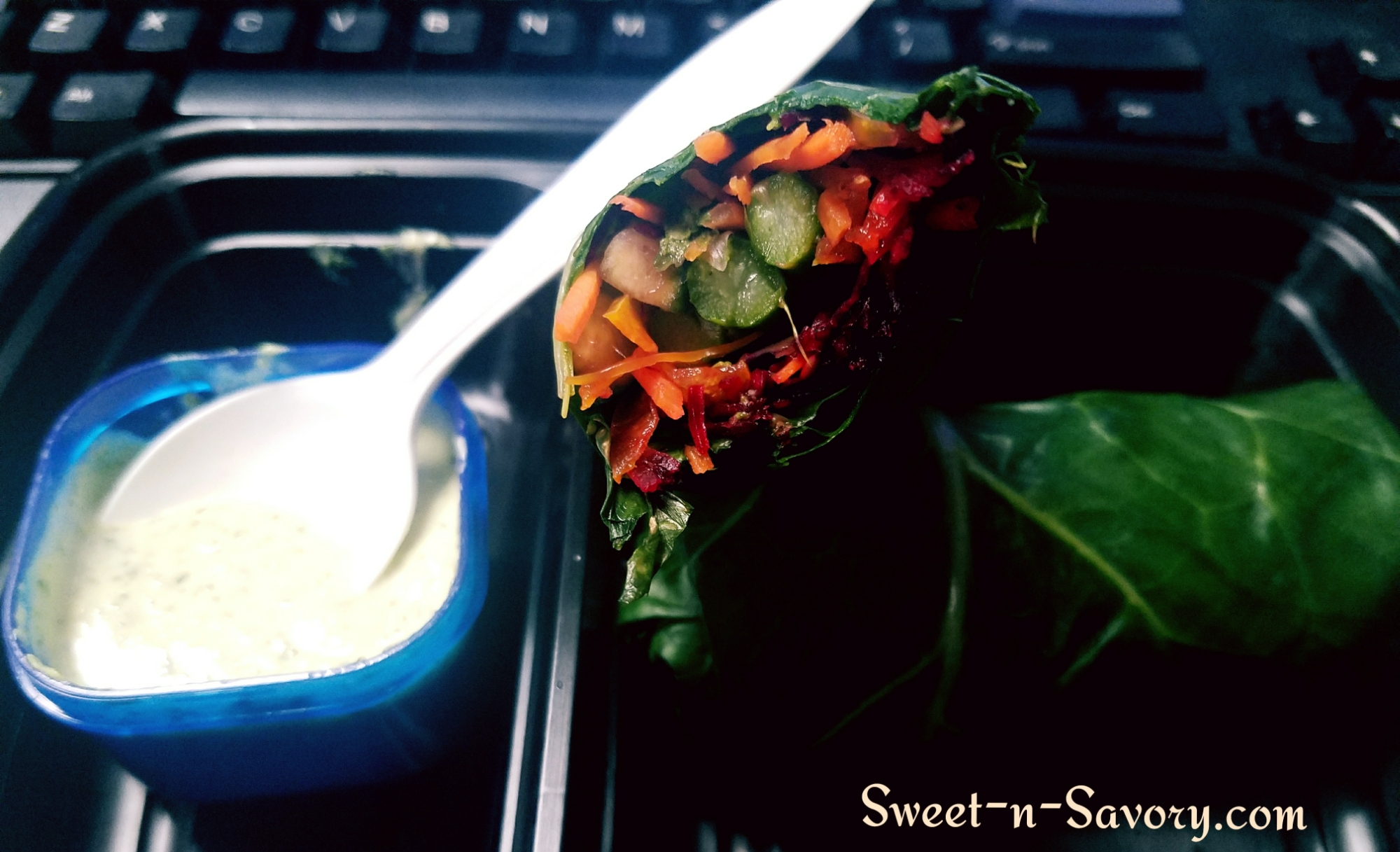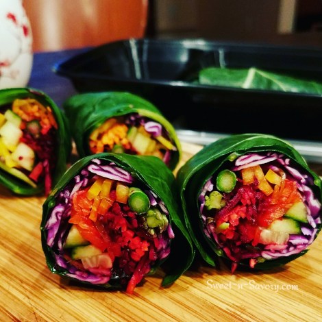 Then just pile the veggies on top of a leaf and roll as you would a regular wrap or stuffed cabbage.